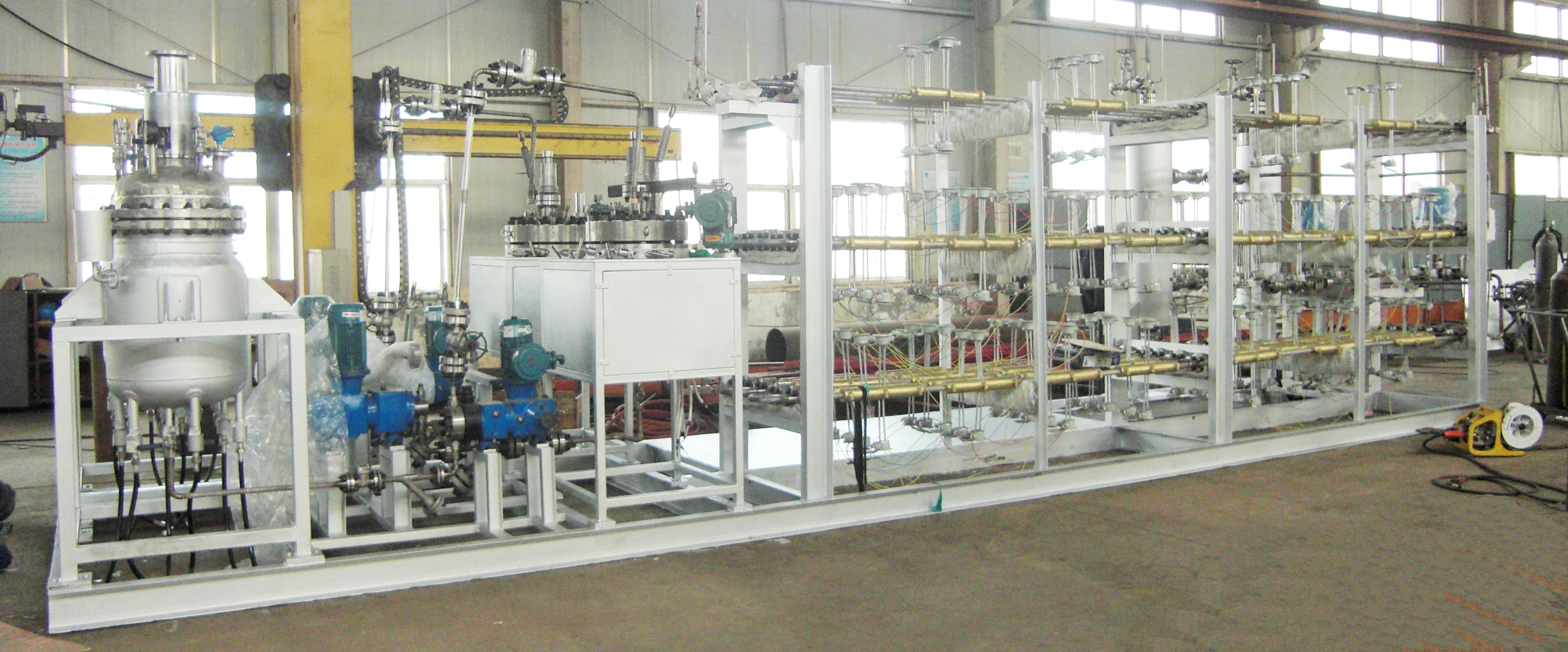 加氫反應(yīng)分為吸熱反應(yīng)和放熱反應(yīng),有些加氫反應(yīng)在反應(yīng)過程中會(huì)釋放大量的熱能。為了生產(chǎn)安全,并及時(shí)降低釜內(nèi)溫度,有些工藝要求釜內(nèi)配大面積的冷卻盤管。此時(shí)單層冷卻盤管無法滿足工藝要求,需要雙層或更多層盤管有效及時(shí)降溫。正威機(jī)械生產(chǎn)的6層盤管內(nèi)配吸氫攪拌槳,加…